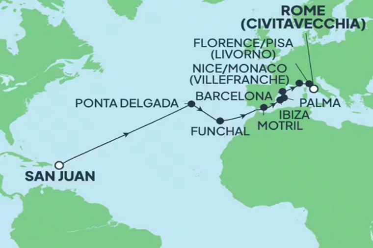 Todos los precios son por persona. Precio tiene incluido los NCCF y Taxes, Fees, & Port Expenses. Precios NO incluyen propinas pre-pagadas de $340.00 p/p, cargo por servicio de $25 p/p. Precios aplican a reservaciones nuevas solamente; precios más económicos al 27 de enero de 2026; siempre sujetos a disponibilidad y cambio en cualquier momento. Itinerarios pueden cambiar. Para reservar se requiere un depósito no reembolsable de $275.00 por persona y la firma del Contrato del Viajero donde se detalla la política de cancelación de nuestra empresa. NO SE ACEPTARA RESERVACION QUE NO CUMPLA CON ESTOS REQUISITOS. Se requiere el PAGO TOTAL 100 días antes de la salida. Se necesita pasaporte con vigencia mayor a los 6 meses luego del regreso para viajar a un destino internacional. Cancelaciones y cambios conllevan penalidad de hasta el costo total. Horarios y fechas de vuelos, aerolíneas y rutas están sujetos a cambios. Cambios en itinerario y línea aérea, aumentos en impuestos, sobrecargos por combustibles o no tener documentos necesarios no evita cargos por cancelación. Recomendamos que compre seguro de viaje para su protección en caso de cancelación u otras eventualidades relacionadas con su viaje, consulte a su agente de seguros. La Compañía no es responsable de la condición física o la salud de los pasajeros que viajan en sus programas ni es responsable de cualquier trastorno o accidente que pueda ocurrir como consecuencia de la misma. Favor solicitar y leer detenidamente las políticas y condiciones de este programa. Revisado el 27 de enero de 2026.