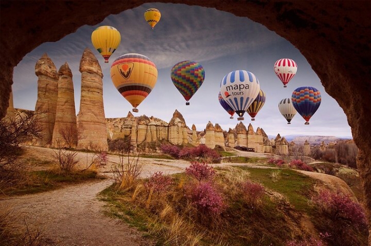 Desayuno en el hotel. A la hora indicada saldremos para realizar para disfrutar de un espectacular paseo en globo aerostático al amanecer. Salida para visitar esta fantástica región, donde nació San Jorge, con su fascinante y original paisaje, formado hace 3 millones de años por lava arrojada de los volcanes Erciyes y Hasan. Visita de los numerosos monasterios y capillas de Göreme, excavados en las rocas y decorados con frescos. Haremos una parada en un taller de alfombras y kilims. También pasaremos por el valle de Güvercinlik (de los palomares) y admiraremos una maravillosa vista panorámica del castillo de Uchisar, situado en lo alto de un promontorio de roca volcánica perforado por túneles y ventanas. Al final haremos una parada en un taller artesano de decoración, piedras típicas y joyas de Capadocia. Por la noche, asistiremos a un espectáculo de danzas folclóricas turcas. Cena y alojamiento.